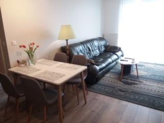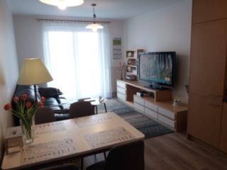 Mieszkanie wykończone. Na podłogach panele, w kuchni i łazience glazura i terakota, na ścianach tynk tradycyjny. Zabudowa kuchenna, wyposażona w AGD. W salonie kanapa i duży stół. W drugim pokojach łóżka.